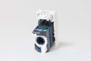 Информационная розетка UTP 1хRJ45 (22,5x45) cat.5e для быстрого монтажа без использования специальных инструментов. Коннекторы с автоматическим прорезанием изоляции проводников.